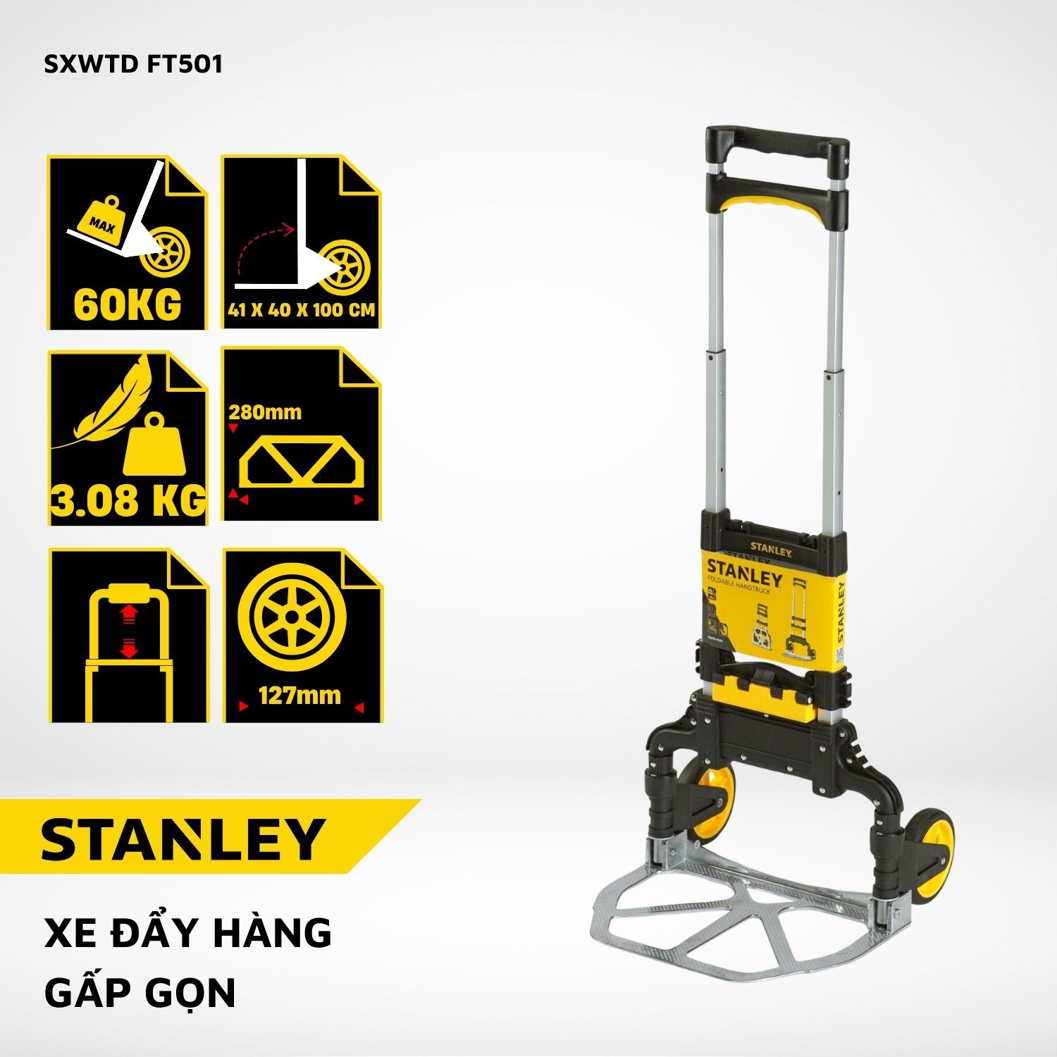 Xe đẩy hàng 2 bánh gấp gọn, hiệu Stanley FT501